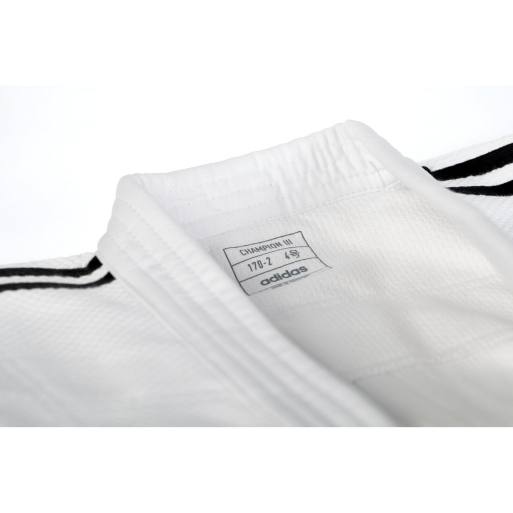 Кимоно Adidas Champion III - разработано в сотрудничестве с чемпионами по дзюдо для чемпионов по дзюдо! Изготовленные из предварительно усаженной, прочной поликотоновой ткани, эти кимоно сохраняют форму после стирки. Хлопковые волокна, укрепленные полиэфирными нитями, обладают повышенной прочностью и лучше выводят влагу. Таким образом, кимоно дольше служит.