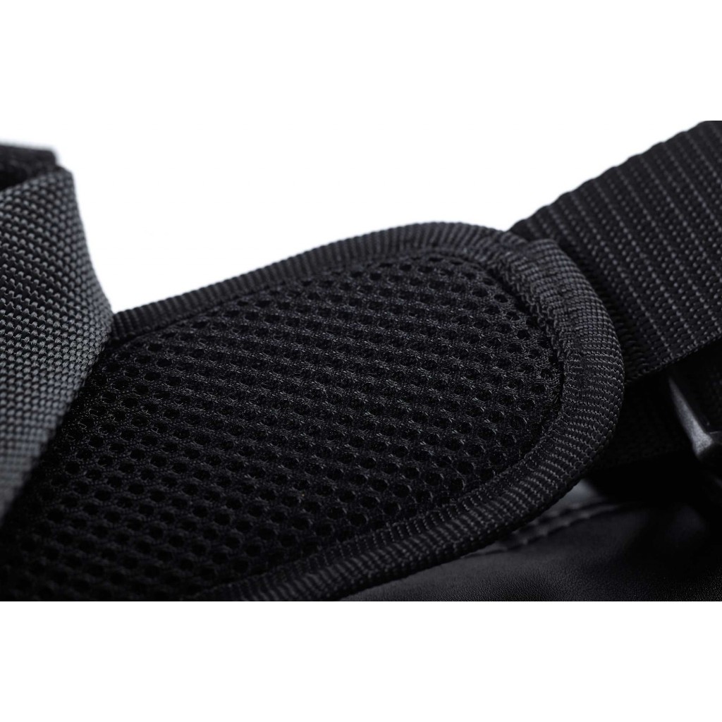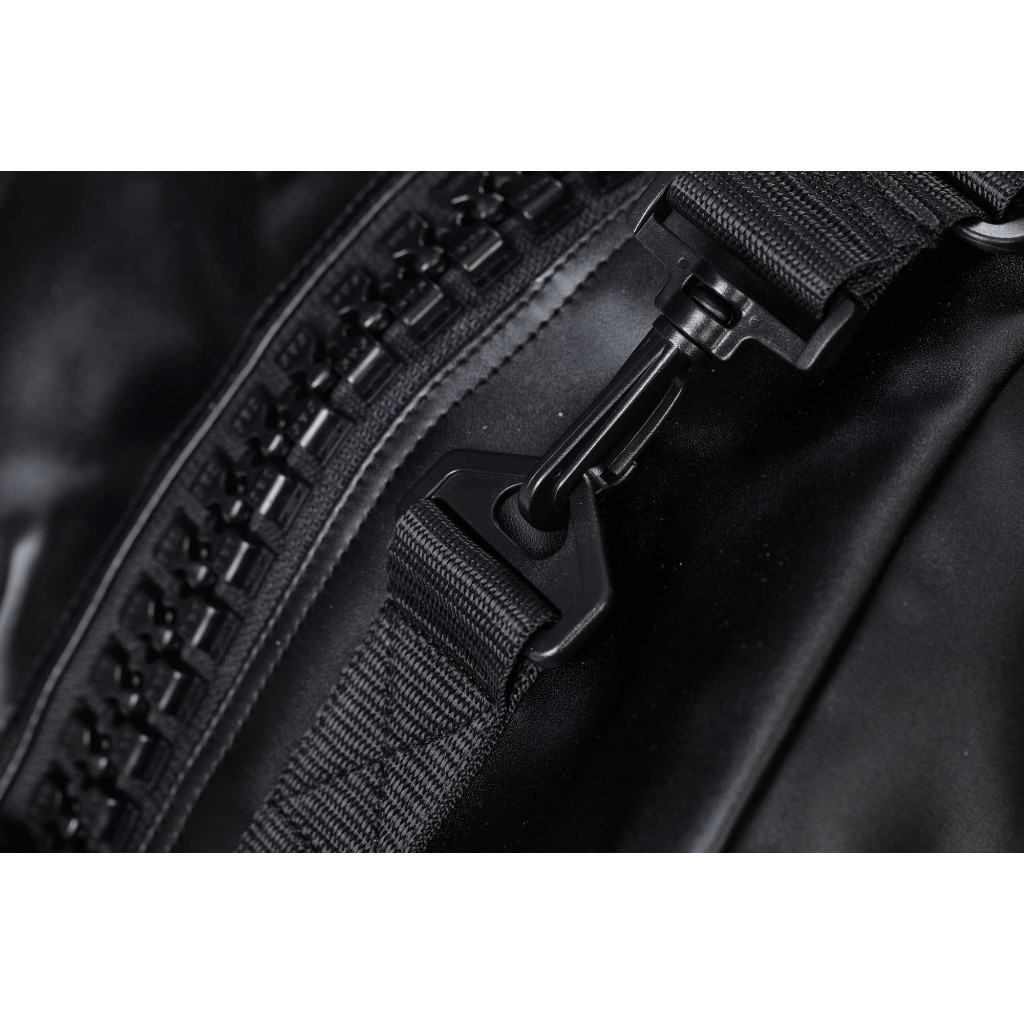 Защелкните карабины на место с нижней стороны с внешней стороны. Повторите это со вторым ремнем, после чего сумка приобретет функцию рюкзака.