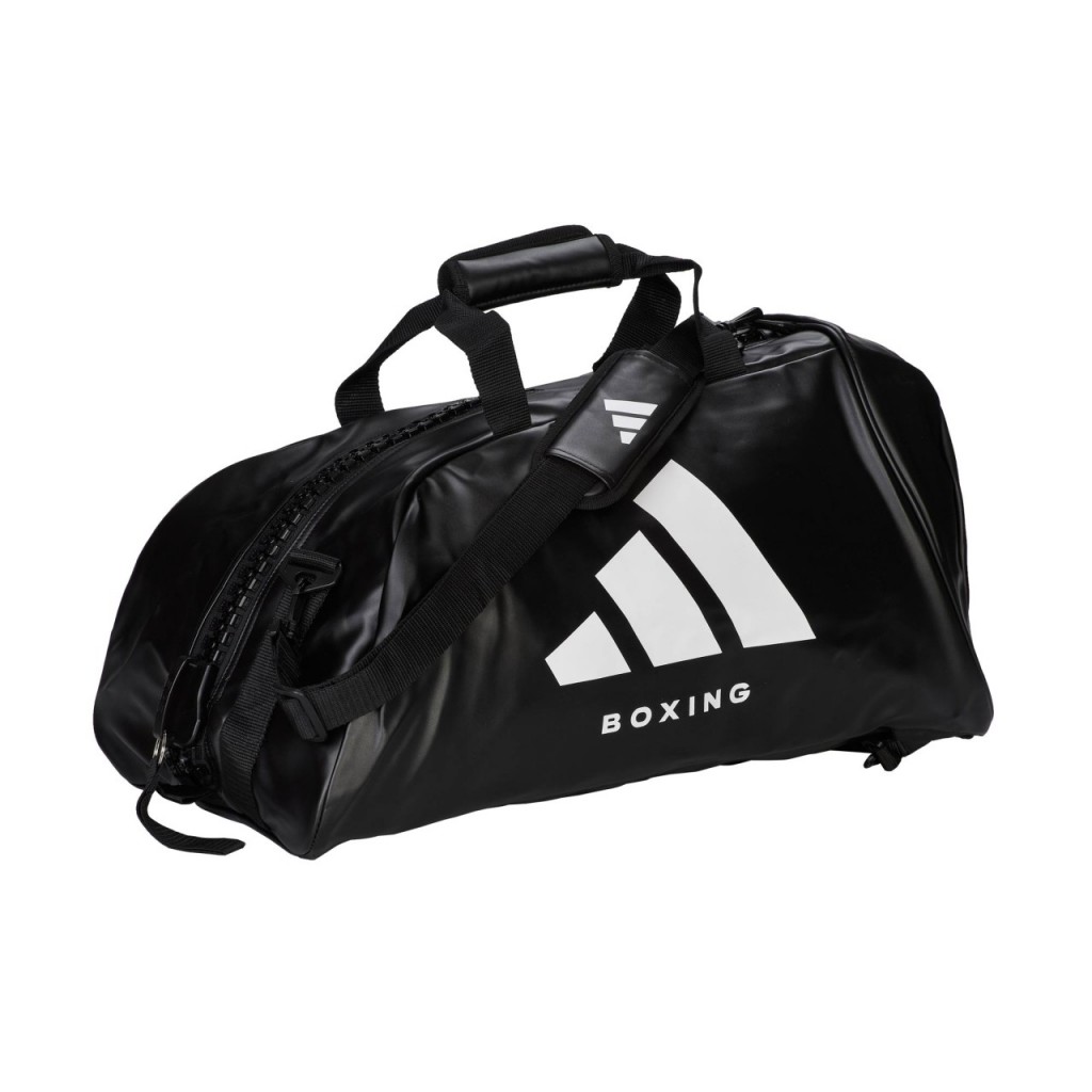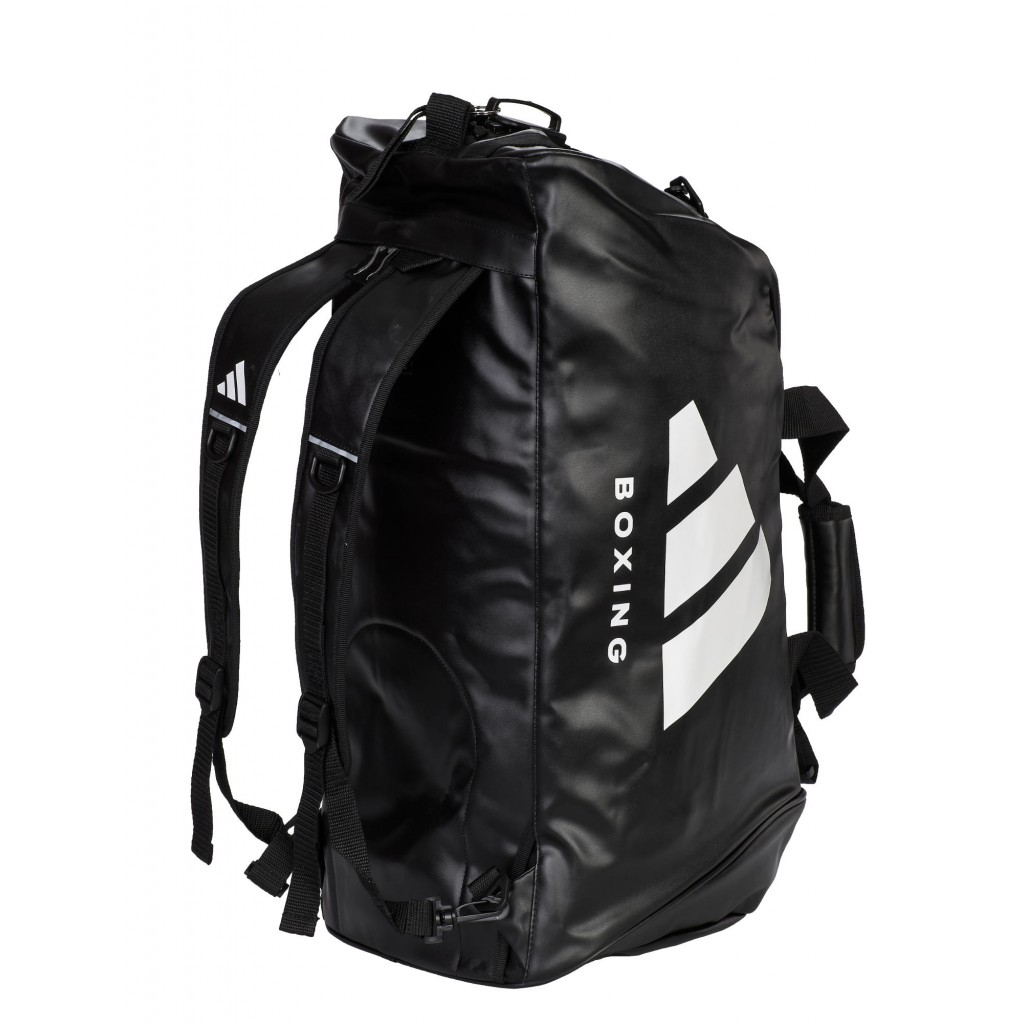 Стильная спортивная сумка-рюкзак Adidas с логотипом Boxing - можно использовать тремя способами: как тоут, через плече или как рюкзак.