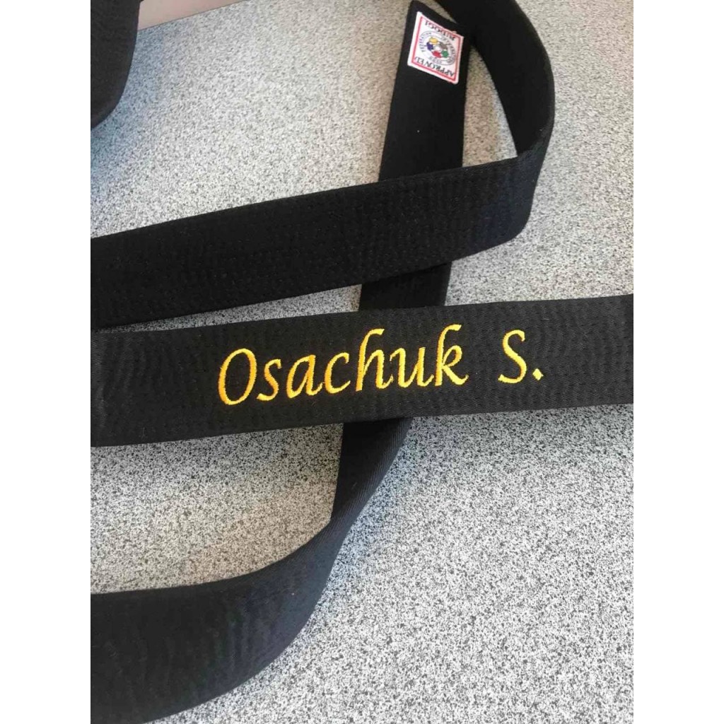 Наша послуга пропонує професійну вишивку на поясах для дзюдо, карате, айкідо, тхеквондо та інших єдиноборств. Ви можете нанести своє ім'я, прізвище, назву клубу чи будь-який інший текст, щоб зробити ваш пояс унікальним і особливим.